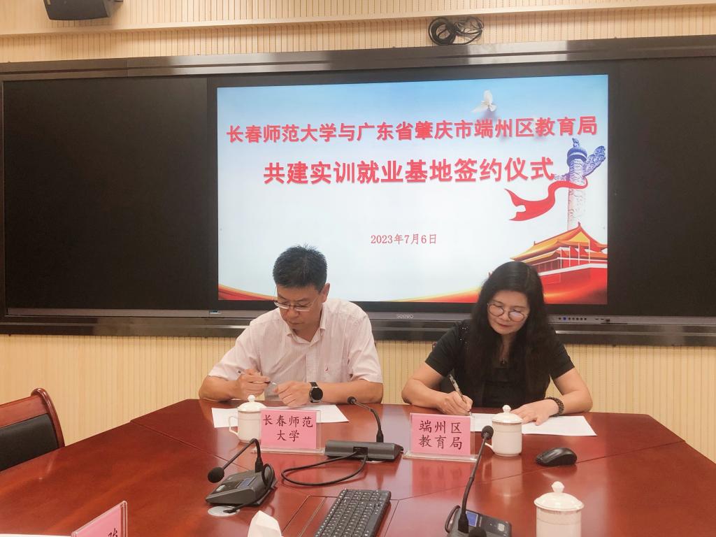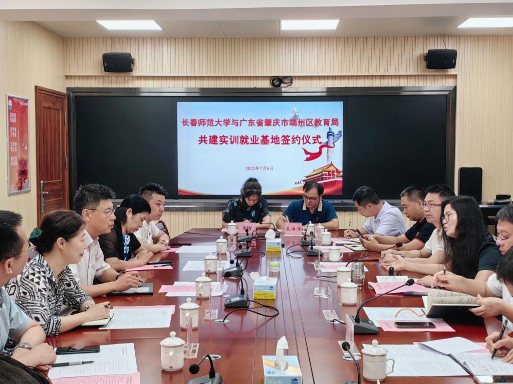 为开拓我校学生实习实训资源,提升学生师范教学实践能力,推进毕业生高质量就业,7月6日,党委副书记杨勇一行6人赴广东省肇庆市,与端州区教育局签订共建实训就业基地协议,并与端州区教育局、端州区各中小学校长代表座谈,洽谈教育顶岗实习合作事宜。