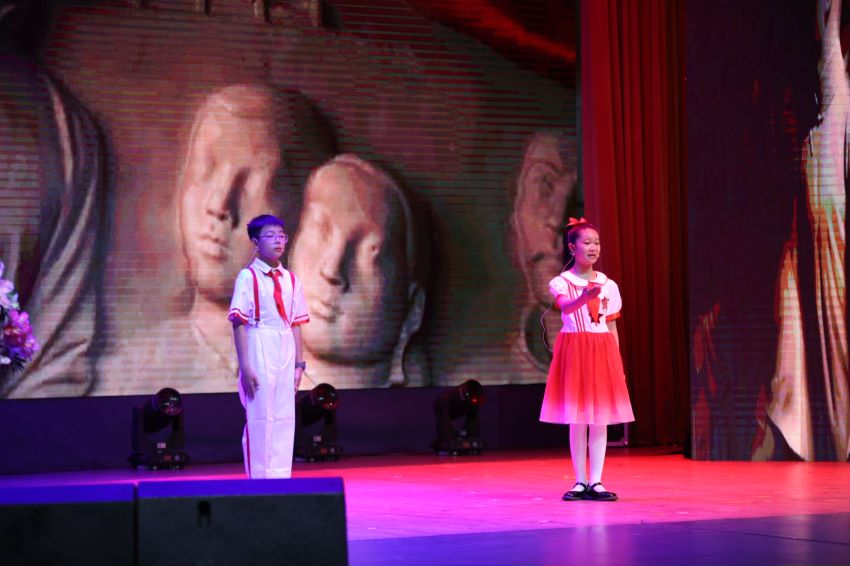 随后,与会领导、嘉宾和师生共同观看了由长春市二道区八道小学学生和长师学子表演的《英雄》《白山黑水话英魂》《天路》等第四届中华经典诵读大赛之“诵读中国”经典诵读大赛获奖作品,身临其境地感受到了经典诵读的强大表现力和感染力。