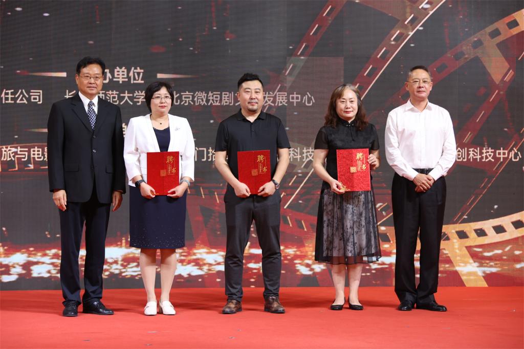 庄严、焦宏奋为我校音乐学院院长郭春蓉、文学院院长杜若松等11人颁发了北京微短剧中心专家聘书。