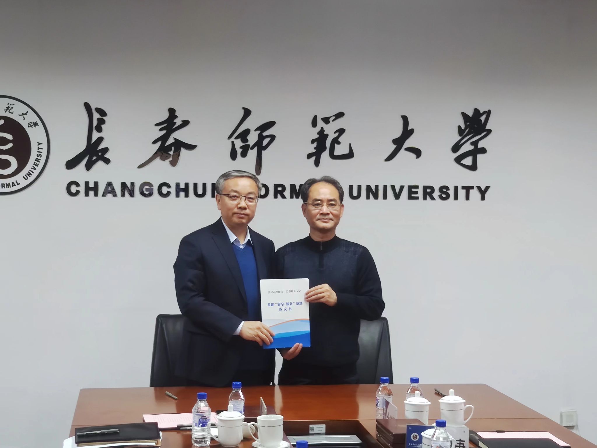 刘国宁与许伟明代表双方签订共建“实习+就业”基地协议书。