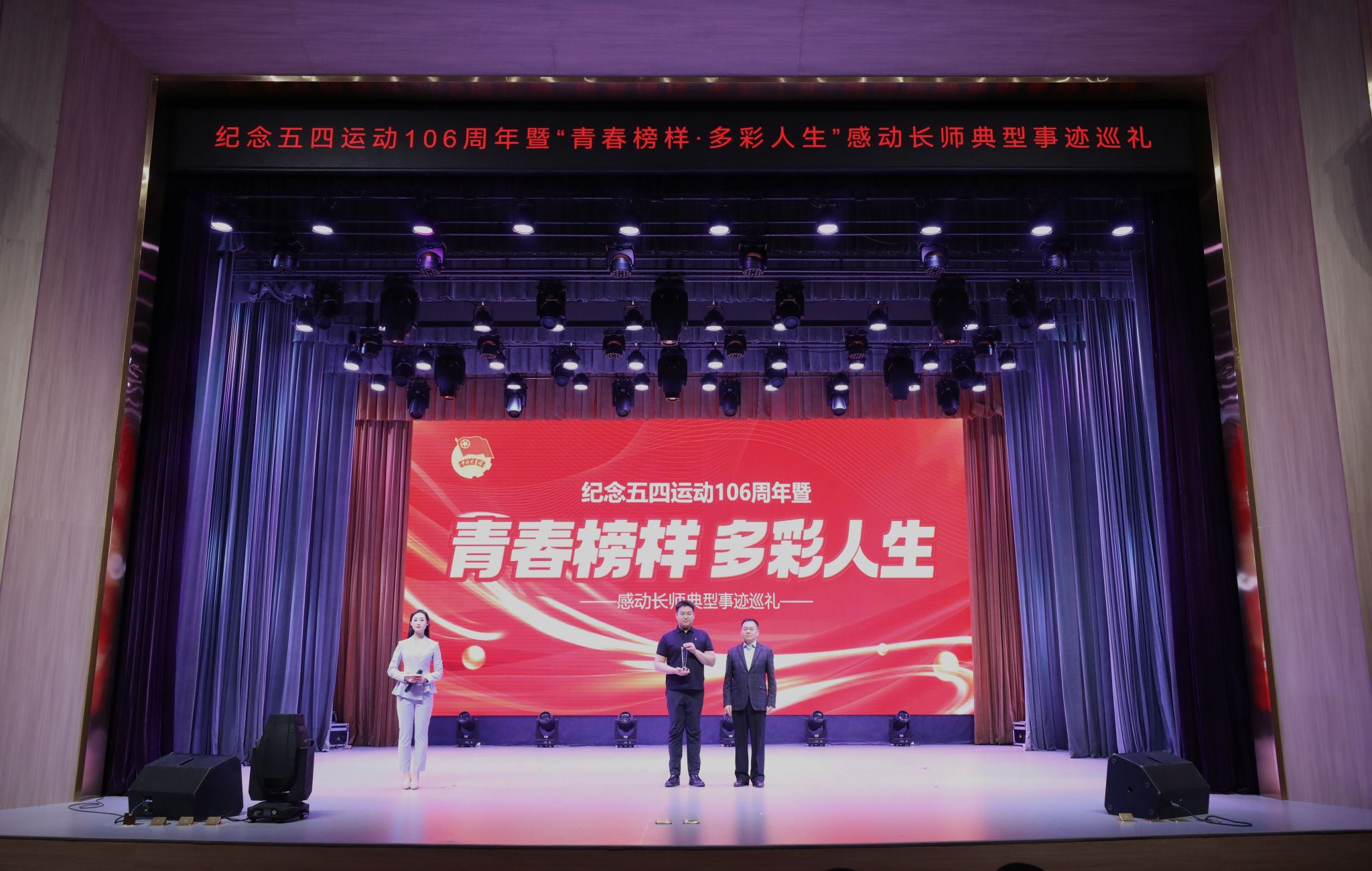 4月27日,“‘以爱之名·绽放青春’纪念五四运动106周年暨‘青春榜样·多彩人生’感动长师典型事迹巡礼”活动在长师会堂举行。